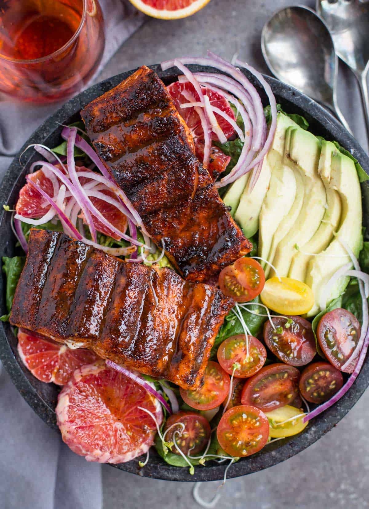 A classic pairing, expertly executed: Grilled Salmon with its savory crust, complemented by a crisp, bright salad and light dressing. Pure, wholesome deliciousness.